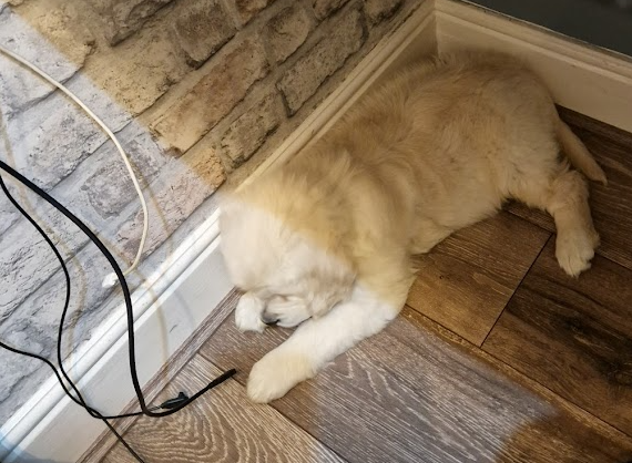 Then this afternoon I found some cables, dad turned his back for 30seconds and i chewed one completely in half it only took me seconds, Dad said I was really lucky it was only a USB cable, if it had been an electric cable apparently I could of fried myself. When the fry food it smells really good and they seem to enjoy eating it but they never share with me so if I might have to remember there is another way to fry! but Mum said I could of ended up with a poodle perm and I don't think that would look good on me, but something to consider for another day.
