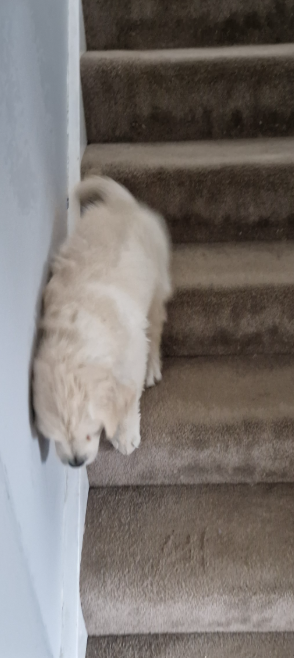 I have mastered this going downstairs business and its not hard at all, I don't know why Mum and Dad were making such a big thing about it, I can get down no problems, I did go a bit to fast once and slide down a few stairs on my belly, I wont do that again it was a bit uncomfortable on my little widget.
