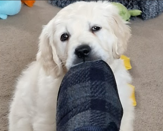 Mum and Dad are not very happy with me apparently I have had a bad day, I weed on the floor, then later I poo'd on the floor and I haven't done either of those for a while, I kept biting them and now their hands are sore, I bit legs, I hung off shoe laces, I stole a sock and nearly fell down stairs trying to run away with it, I wouldn't come in from the garden when I was told, I chewed slippers whilst they were still on their feet. I might need to rethink as I am not a naughty boy really, I think I better have a better day tomorrow!